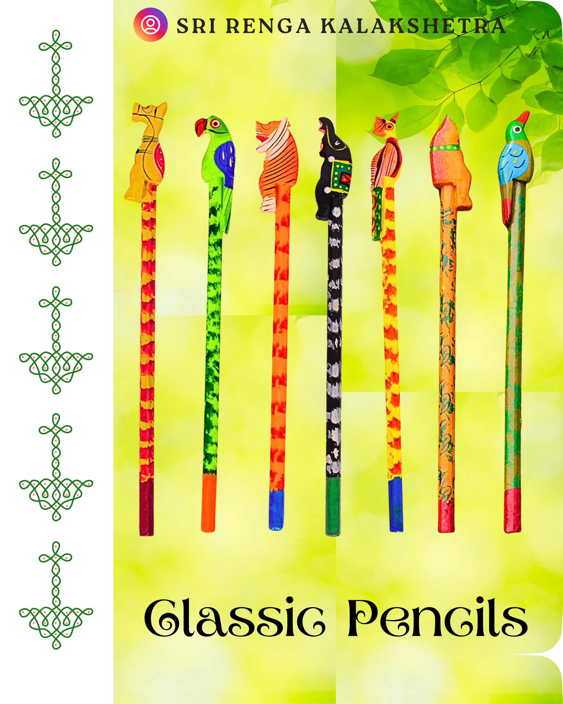 Brighten up your childโs stationery collection with these Colourful Hand-Painted Pencils, each adorned with wood-carved birds or animals at the back.