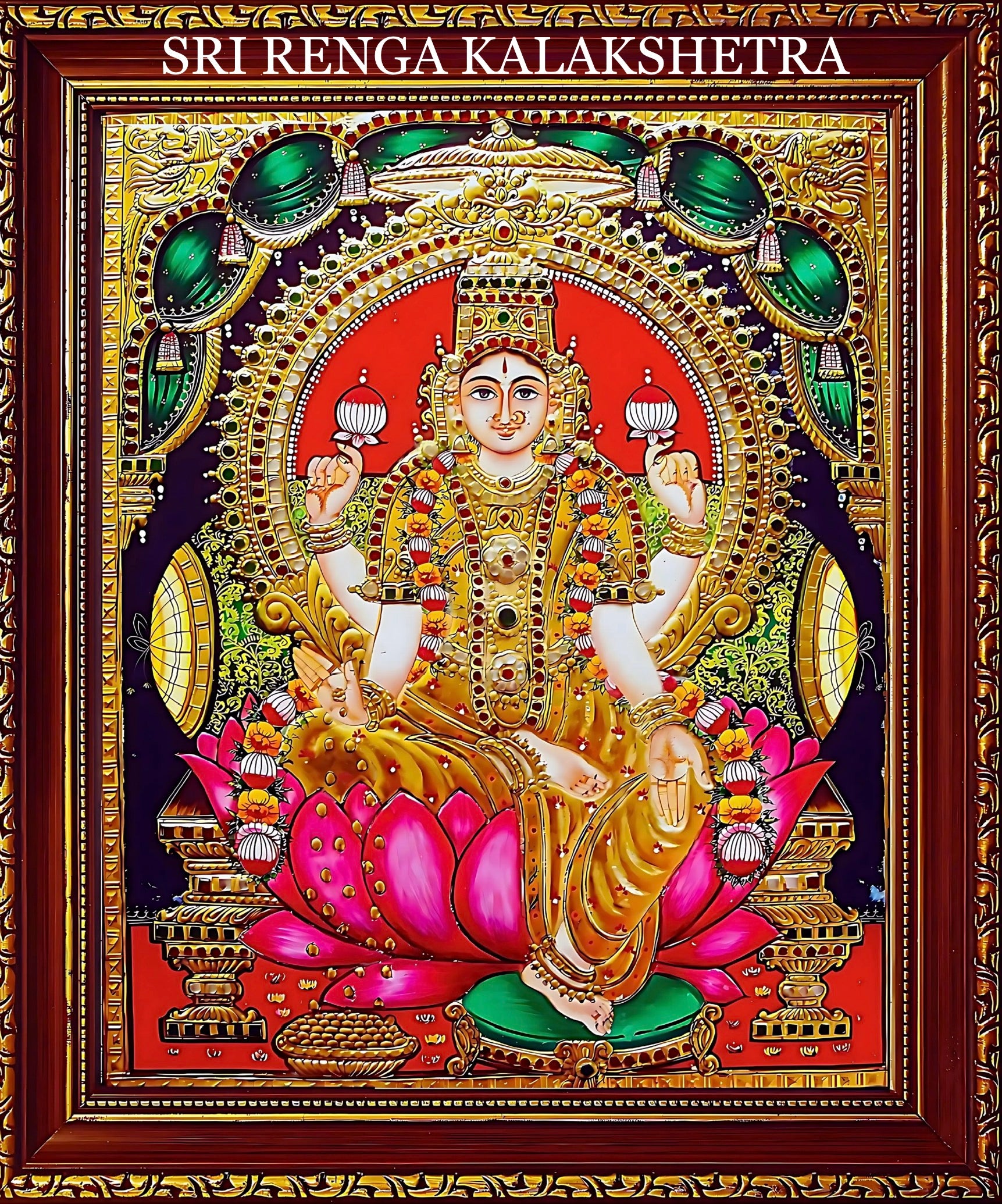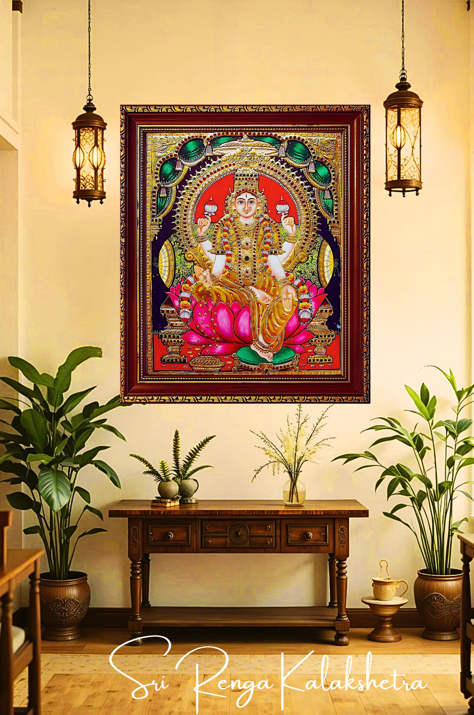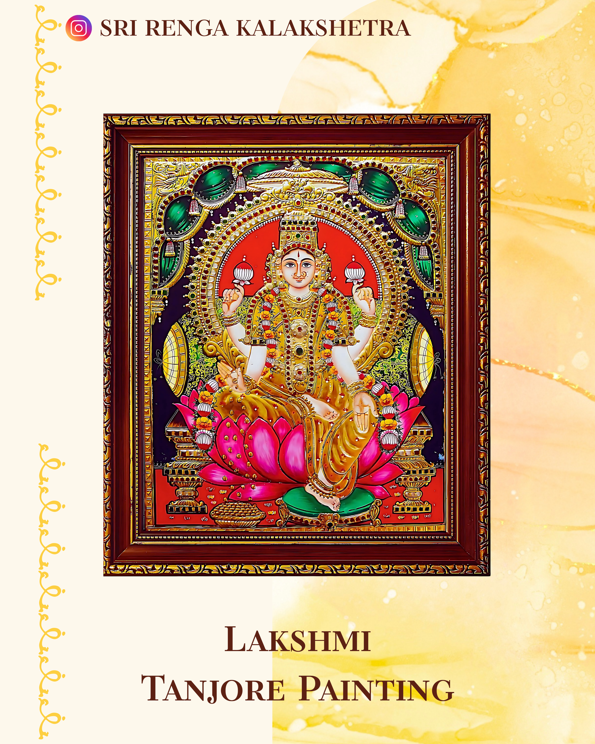 Adorn your space with the divine energy of goddess Lakshmi, lovingly portrayed in traditional Tanjore style.
