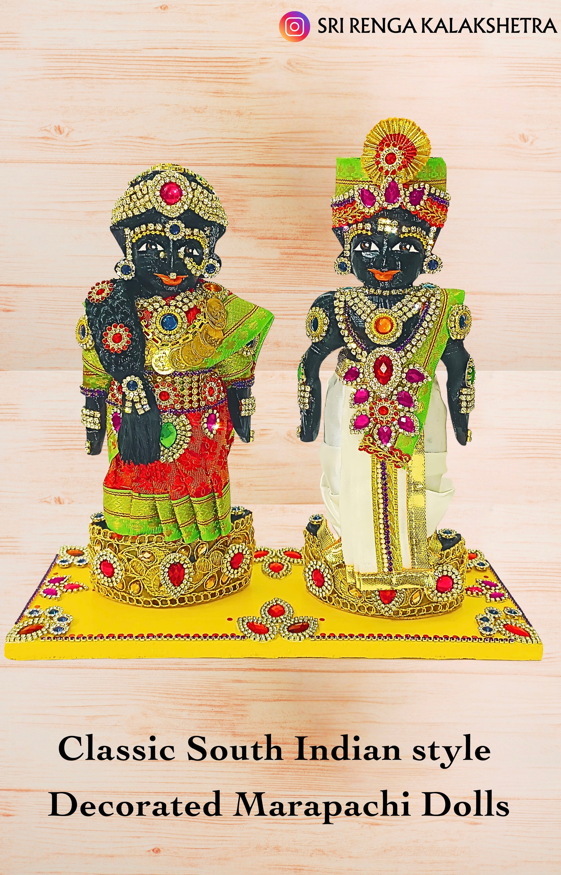 Crafted from the finest quality original woods like Red Sanders and Neem, our Marapachi Dolls are a symbol of legacy, beauty. Each piece is meticulously handcrafted, ensuring lasting durability, vibrant decoration, perfect to be passed down through generations.