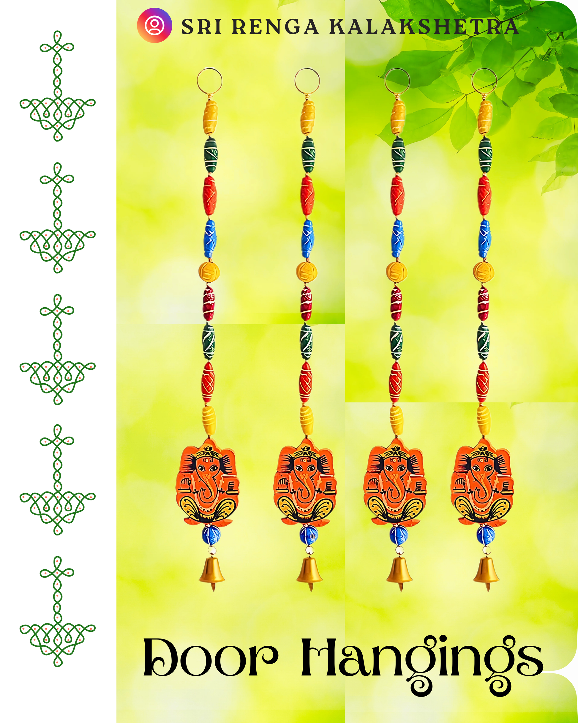 Colour, tradition, and craftsmanship โ beautifully brought together. Presenting the Wooden Hand-Painted Ganesha Door Hangings in our Handcrafted Collection. Crafted with wooden elements, fully hand-painted in vibrant traditional colours and finished with a beaded string, this pair adds a divine, festive and artistic charm to any doorway or wall.