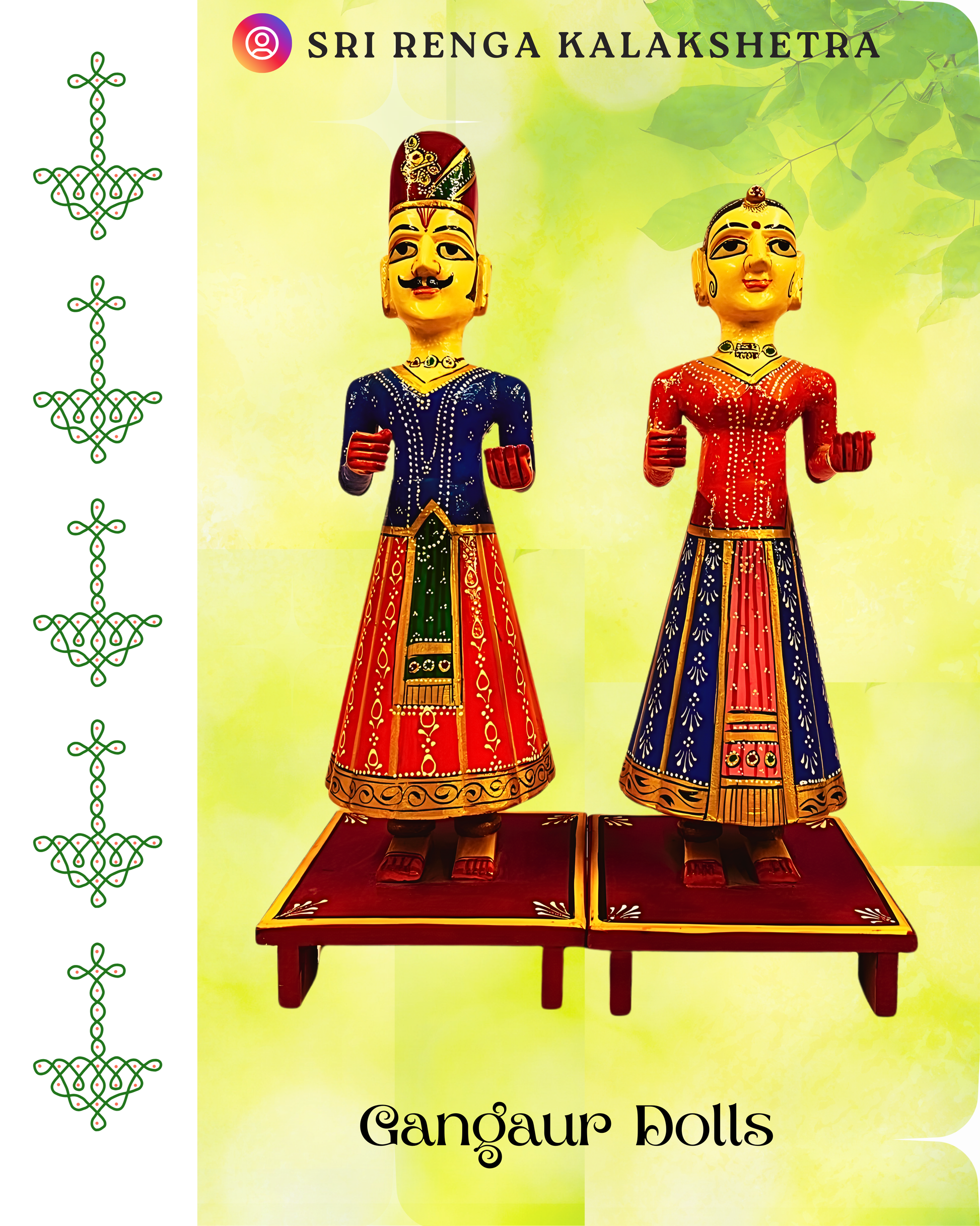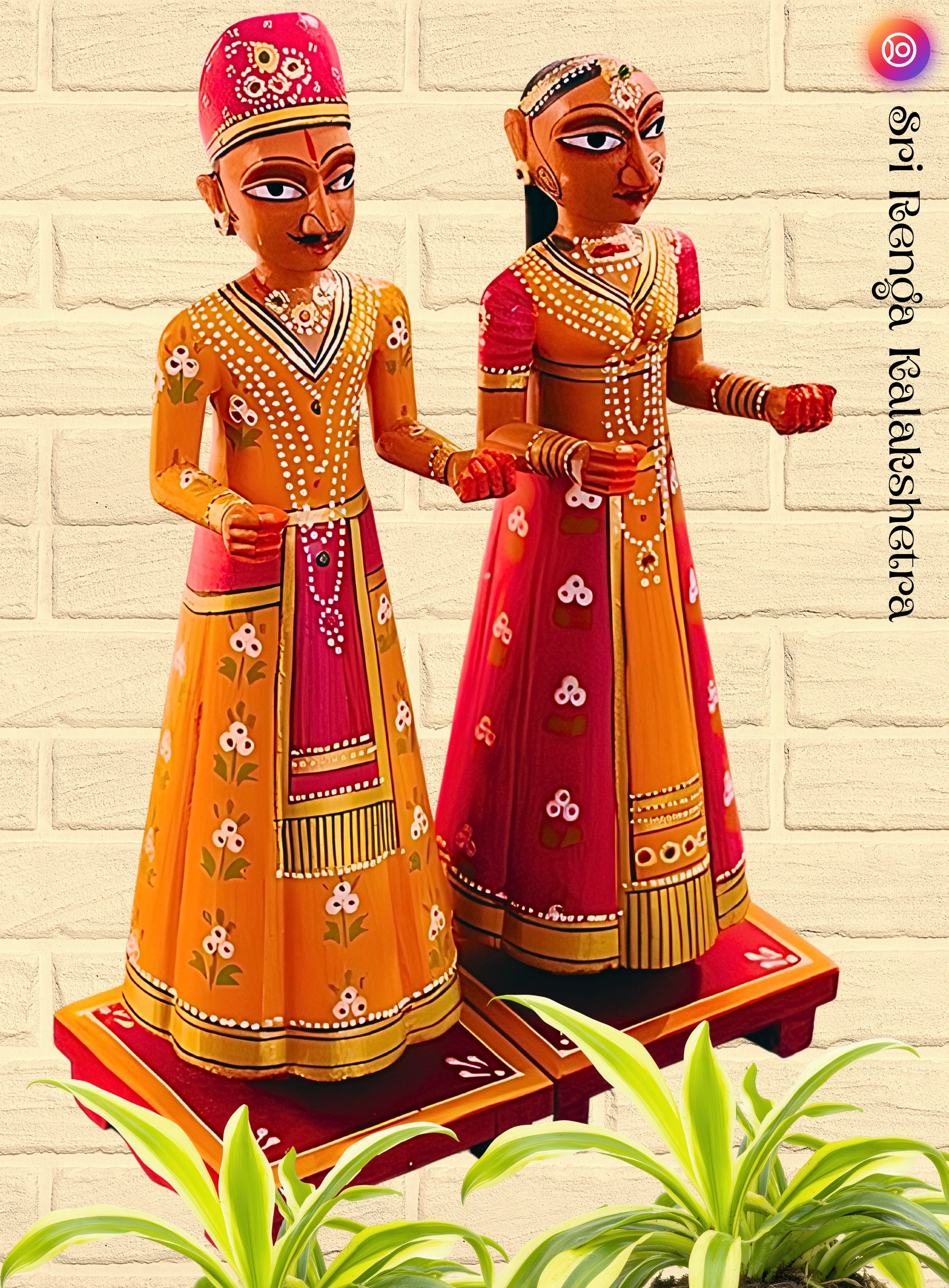 Celebrate Rajasthanโs rich heritage with the set of two traditional Gangapur dolls,ย one male and one female, handcrafted from wood and hand-painted in classic Rajasthani style. Traditionally used during the Gangaur festival,ย these dolls symbolise blissย and devotion to the Goddess.