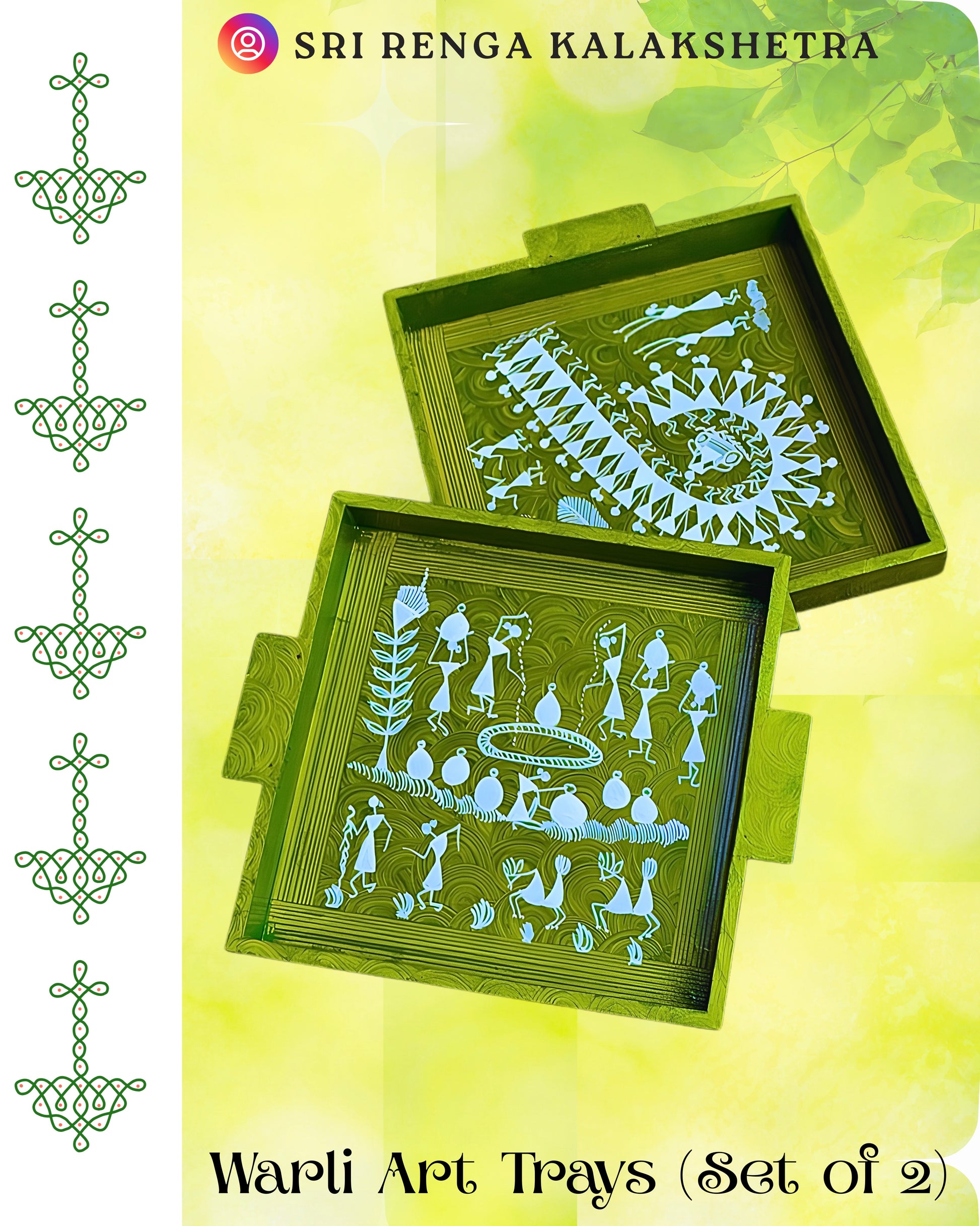 Add a touch of traditional Indian artistry to your home with these Warli Art Trays. Handcrafted from quality wood and hand-painted with authentic Warli designs, it features intricate tribal patterns celebrating life, nature, and community. Perfect for serving snacks, displaying decor, or as a unique gift, these trays combine practicality with cultural charm.