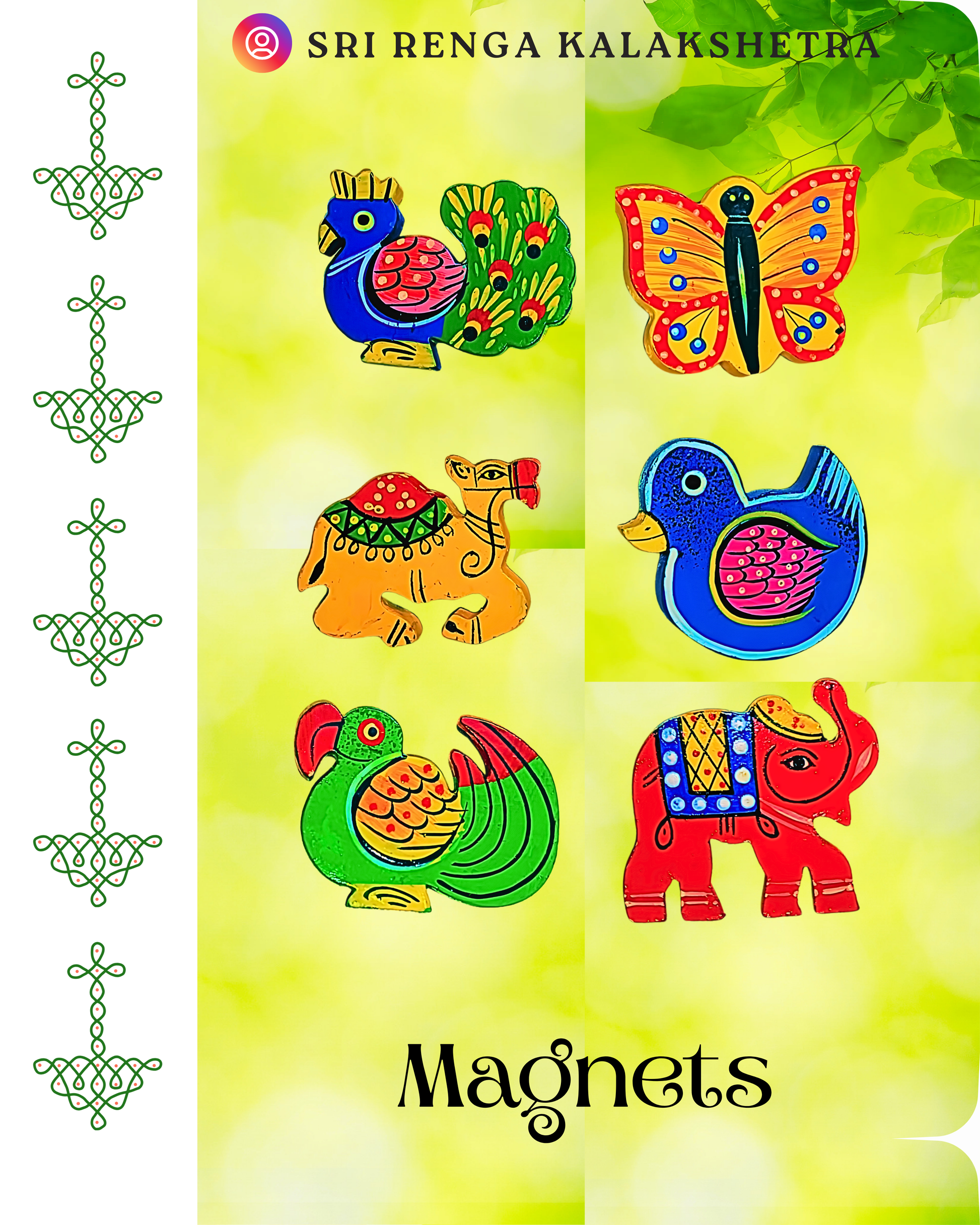 โจ Add a pop of tradition, color, and handcrafted artistry to your fridge, gifting hampers, or party celebrations with these charming wooden magnets! โจ